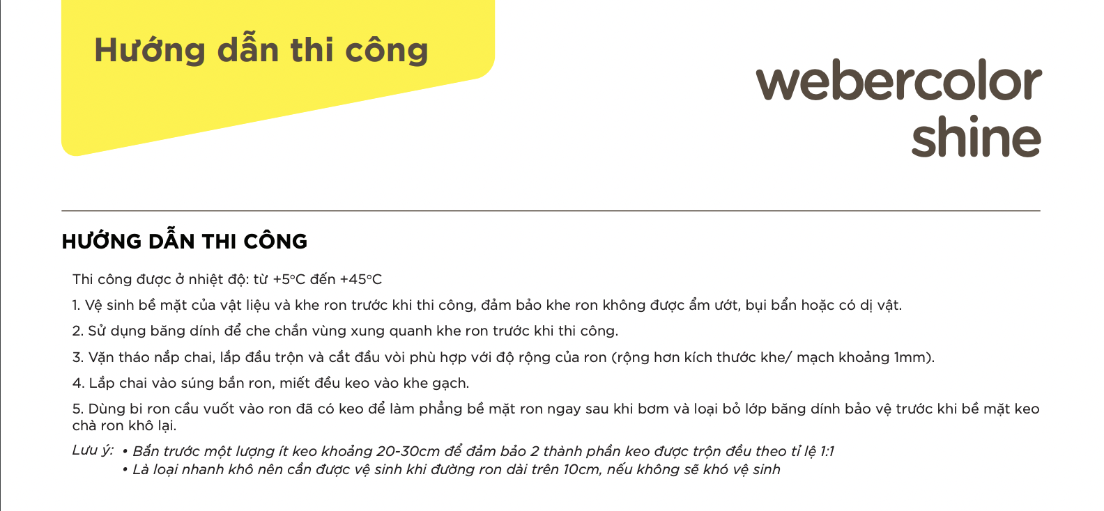 Bộ dụng cụ giúp thi công keo chà ron 2 thành phần webercolor shine nhanh, đơn giản và đúng chuẩn.